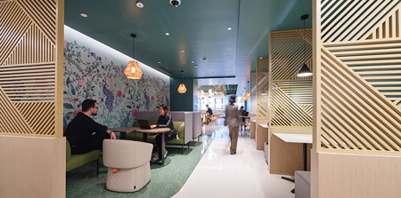 The interior design needs to meet the global technology company’s workplace design standards while creating unique design features that incorporate local culture and urban attributes. Shikumen is a traditional Shanghainese architectural style combining Western and Chinese elements. These two- to three-story structures with high brick walls enclosing narrow front yards blend Western and Chinese elements. The neighborhood, therefore, is an essential element in this architectural style. The workplace areas are designed in a square layout inspired by the Shikumen concept. Each floor is divided into nine “neighborhoods” designated for nine specific teams. Doorways are between each neighborhood to promote convenient communication and collaboration. This design approach can ensure an independent space for each team while encouraging cooperation. At the heart of each square neighborhood lies the "Core," a central hub that provides vertical circulation, common areas, focus BC, and photo BC. The interior design of each pantry on two to four floors has a concept and color theme related to the time/ culture of Shanghai, presenting a vivid and dynamic visual and space experience blending the past and present. The 2nd-floor pantry – Huangpu River: The Old utilitarian structures on the riverbank are showcased in an urban and color-neutral design style. The 3rd-floor pantry – Yu Yuan Garden: The traditional Chinese Garden style and wood craft ornament rich traditional aesthetics. The 4th floor pantry – French Concession: The design presents the Art Deco architecture details & modern lifestyle. Demonstrating a deep commitment to environmental responsibility, the project prioritizes sustainability throughout its design. This focus is embodied in the "3Rs". Reuse: Some of the furniture is recycled from other workplaces. Recycle: More than 50% of decorative materials contain recycled ingredients. Reduce: Standardized materials reduce construction cuts, local sourcing lowers the carbon footprint, and adhesive use is minimized. Carpet installation skips adhesives entirely, eliminating harmful VOCs. Even necessary wood products meet eco-certifications or use low-VOC adhesives. More than 60% of the materials have an EPD (Environmental Product Declaration), which includes data on the product's environmental impact throughout its entire lifecycle (from raw material extraction/production, processing, transportation, distribution, and use to disposal after disposal). This strives to minimize the project's impact on the environment. The global technology company prioritizes employee well-being with a range of people-centric designs. Working parents can utilize dedicated mother and baby rooms, while accessible elevator buttons ensure inclusivity for all. Natural light and scenic views are maximized by positioning workstations close to windows, further reducing eye strain. The design adopts considerable healthy materials, including acoustic panels, recycled carpets, and greenery. In addition, it incorporates traditional Chinese and Shanghai local culture through artistic elements, such as Chinese ink and wash, a BOVER light fixture, and a water ripple pattern.