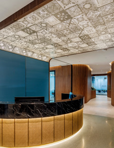 The design approach take cues from Singapore Cultural Diversity with vibrant colors, earthy tones and different textures are prominent throughout, creating a positive vibe in the hybrid working environment, which encourages collaboration and communication while aligning with Company’s brand positioning – “Partnering for Progress”. Central to the Woods Bagot approach was the creation of a ‘Kit of Parts’ comprising different settings for workers depending on task, mood, personality, and work style with a focus on inclusion, diversity, and well-being. The workspace has four design themes – welcome, collaboration, focus and social. Each of the design theme corresponding to Singapore local elements that evoke sense of familiarity to the user. A modern twist of Singapore Heritage Architecture influence was introduced as part of the welcome experience. The Glowing Peranakan motifs Feature Ceiling expand and greet visitor creating contemporary connection to shophouses 5-footway walkway. Usage of natural stone such as sage green terrazzo, rattan and walnut timber create a hospitality atmosphere. Relish Cafe and lounge integrated at the back of the concierge elevate the usage space further as it acts as company’s community social space. Hidden Operable wall installed in between the two zones for user’s maximum flexibility to convert the space into Town Hall function. Social area The peranakan elements bleeds to the social space with the application of soft relaxing palette and texture that triggers our touch and visual senses. Colored stained glass details was introduced to bring in natural lighting to the space, creating enjoyable moments for the staff during break out and informal working. Focus area Featuring sit-to-stand workstations for all staff, booths, 120-degree desks for agile working, 22 think tank rooms, 11 phone booths for private calls, focus areas, collaboration hubs and 12 meeting rooms of different sizes. All the private think tank rooms have different different color palettes and personal touch of artwork reflecting concept of a Vibrant Singapore. Collaboration area Taking inspiration from the Indian markets filled with layers of colours, aroma of spices and flowers. The geometry of acoustic baffle in the ceiling and colorful selection of collaboration furniture to create a dynamic setting that support collaboration function. Art is an important component of Company’s workspaces and culture. It stimulates dialogue and creates an inspiring environment. While art and architecture have become important visual expressions of the company’s identity, they also underpin Company’s commitment to offering staff a stimulating work environment. In the Singapore workplace, the varied artworks have been created by artists with strong ties to the city-state. While the collection has no single theme, the artworks convey varied and diverse stories. Like Singapore itself, the art collection is diverse and complex, visually and culturally colourful.