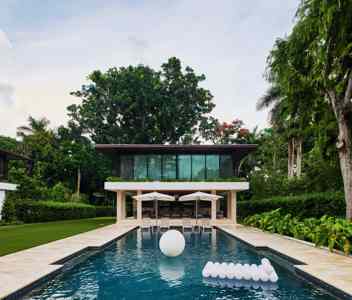 A large new house tucked away on a substantial plot in a family compound. PROJECT Designing a modern house for a young tech-savvy international couple with small children who sought a serene interior which balanced home life, work, and entertaining. BRIEF Assure was asked by a young couple to design clean functional interiors that incorporated indoor and outdoor spaces. The project was a new construction in a family compound created with Assure’s input. The clients and their growing family were to move from an apartment in Miami Beach to a large house which was tailored to their requirements. As part of life with young children the clients requested two separate family rooms and a playroom. The husband from a tech background wanted a very smart home and Assure aimed to deliver this without sacrificing style. A home office needed to be flexible for both clients, an entrepreneur, and a fashion executive, to work from home as needed. The wife, who works in the fashion industry, is an accomplished cook and this space was specially tailored to her culinary needs. Assure has delivered a supremely comfortable, stylish, and functional house for their clients. Everyone has their own space, the layered tactile materials suit Miami climate and the crisply decorated rooms are infused with lots of natural light. DESIGN Assure provided a full consulting package working with the architect, designing all the interiors including the kitchen, lighting, and sourcing. Modern interiors with warm elements come together in a fresh and welcoming way. Throughout the house, the Studio introduced an earthy palette with neutral hues, layering texture, and interest via tactile materials such as linen, boucle velvet and accent colors in greens and blues. These elements were conceived as part of a laidback and refined decorating scheme suitable for tropical living.