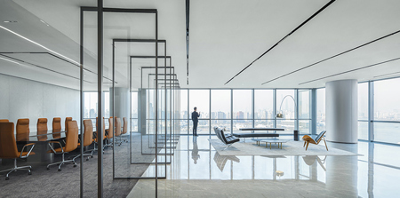 Benoy's vision for Shanghai Expo Place was to create a landmark urban waterfront complex that seamlessly integrates retail and office spaces. The design journey began with a thorough analysis of the space's advantages, ensuring the interior layout maximized these benefits while preserving the breathtaking views of the Huangpu River and city skyline. Challenges and Solutions A primary challenge was selecting and using materials, particularly stone. The design concept aimed to simulate the platform organically ‘growing’ from the ground with a circular arc, requiring meticulous attention to texture and grain. Each piece of stone was manually typeset at the processing factory to ensure a seamless appearance. Evolving urban workspace needs posed another challenge. As enterprises seek efficient spaces like training rooms and multimedia conference rooms, Benoy explored flexible working space designs. This approach enhances the office experience, allowing enterprises to balance community, well-being, and work efficiency. Design Concept In initial design stages, the focus was on maximizing space advantages while preserving the scenic views. Adjacent to the Expo's "one axis and four pavilions," Shanghai Expo Place boasts stunning vistas of the Huangpu River and city skyline. Inspired by "定格" (dìnggé), meaning to freeze or capture a moment, the design encapsulates the humanistic essence and developmental potential of the urban landscape. Benoy adopted the principle of "one step one scene," dividing the space into four experiential levels: repression, framing, confrontation, and borrowing of scenery. Each theme evokes a distinct ambiance through the skillful manipulation of light, shadow, and color. Key Design Elements: Minimalist Ceiling Design: Natural marble accents harmoniously merge commercial sophistication with artistic elegance, offering a diverse and enriching experiential journey. Immersive Brand Experience: Guests ascending to the 26th floor in the high-speed elevator are greeted by lines and textures symbolizing science and technology. Multimedia area, cutting-edge digital technology converge with innovative spatial concepts to deliver an immersive audio-visual experience, blurring the lines between reality and illusion. Exhibition Hall Design: The reception area serves as a transitional buffer, strategically dividing the space to harmonize the view, ceiling, and floor materials, encouraging exploration. The exhibition space also features a 270° panorama window, offering breathtaking views of Shanghai’s skyline. Viewing Lounge Area: Natural wood grain and undulating stone textures adorn the walls, creating a strong sense of modernity contrasted with the mirrored ceiling design. This highlights the urban landscape of the four museums along the axis outside the window. Environmental Impact and Sustainability: Benoy's commitment to sustainability is evident throughout the project. Environmentally friendly and recyclable local materials were selected, including carpets made from recycled fibers and products meeting low VOC emission standards. Special processes, such as treating metal with imitation copper plates, required manual artistry to achieve natural effects. The office tower was designed to meet LEED Gold certification standards, considering all stages of the building's lifecycle. This commitment to sustainability extended to the interior of the office experience center, creating a "third space" that advocates a free and open work style, balancing economic, social, and environmental development.