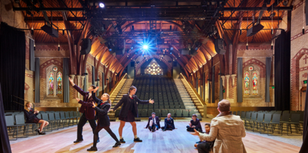 The church's cruciform plan informed the thrust stage configuration—the audience is seated on three sides of the new sprung stage floor that supports a myriad of performance styles. New steelwork, engineered to be suspended from the existing timber roof trusses, support stage machinery, acoustic reflectors, and drapes to allow flexible subdivision of the stage in various configurations.Careful coordination with services and theatre consultants allowed ductwork and conduits to be mostly concealed in the subfloor space to minimise their visual impact. The integration of cutting-edge audiovisual technologies, including an L-Acoustics L-ISA immersive audio system and modular video wall, overcomes the acoustic and scenographic limitations of the heritage fabric and empowers students to reimagine performing arts in an unconventional theatre environment.